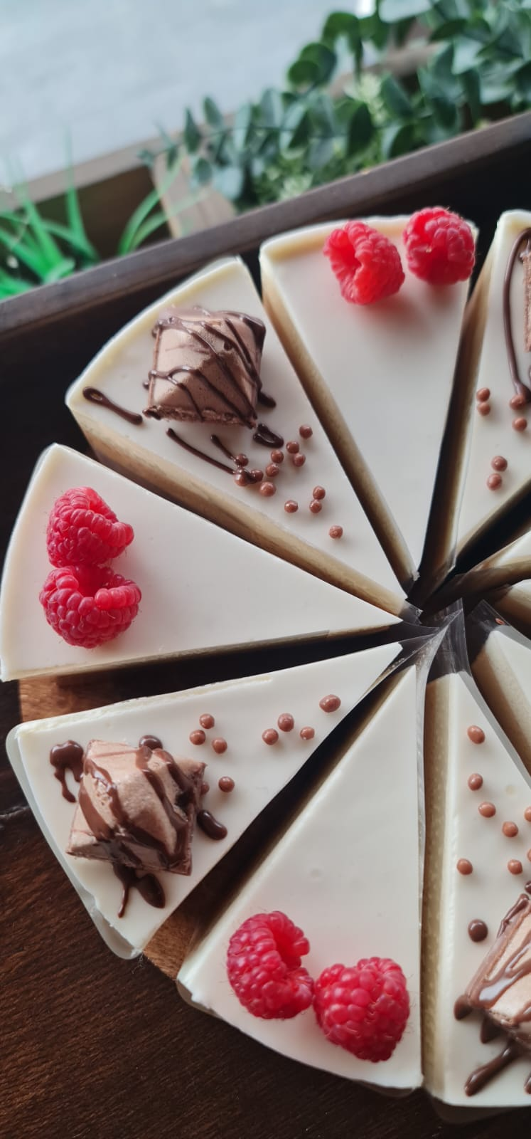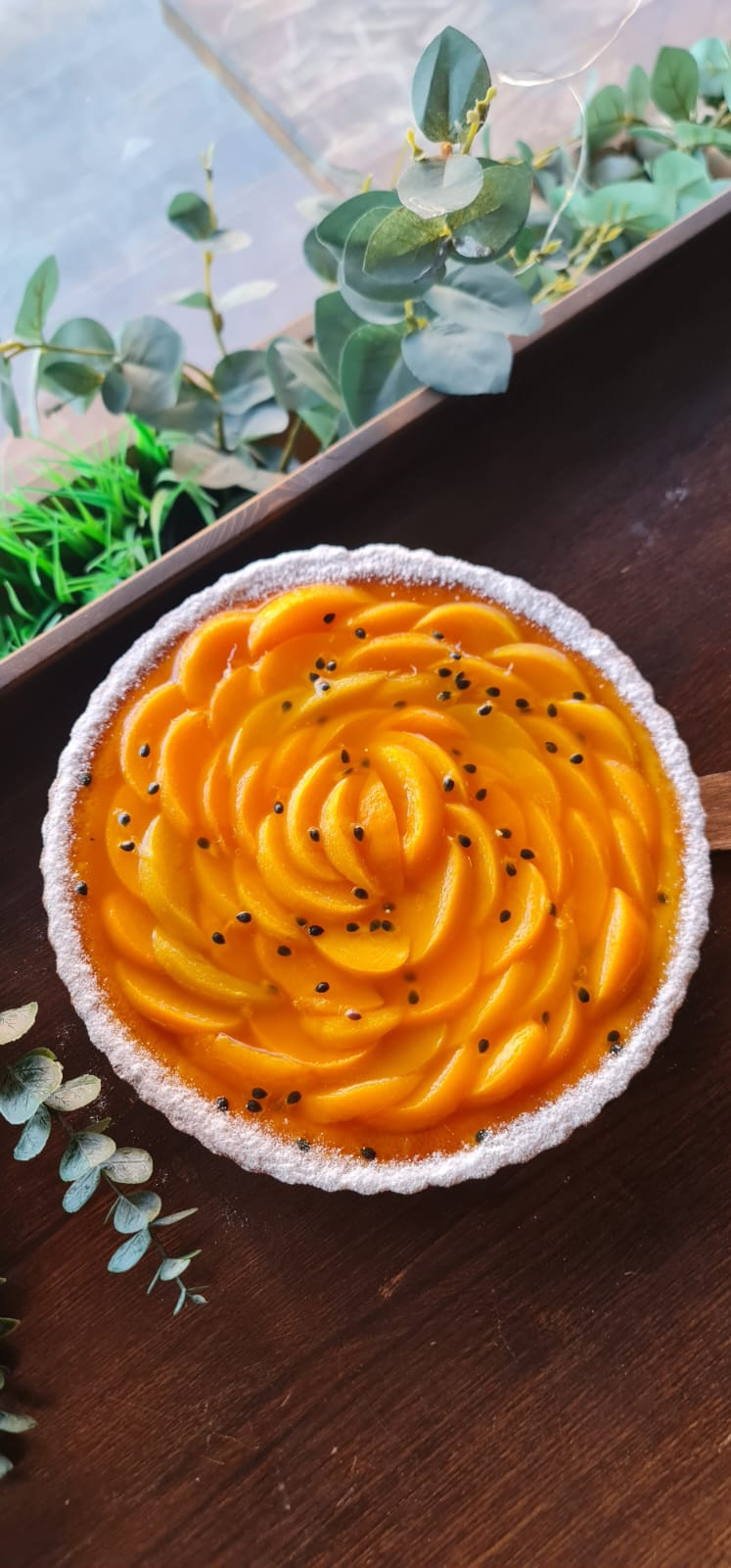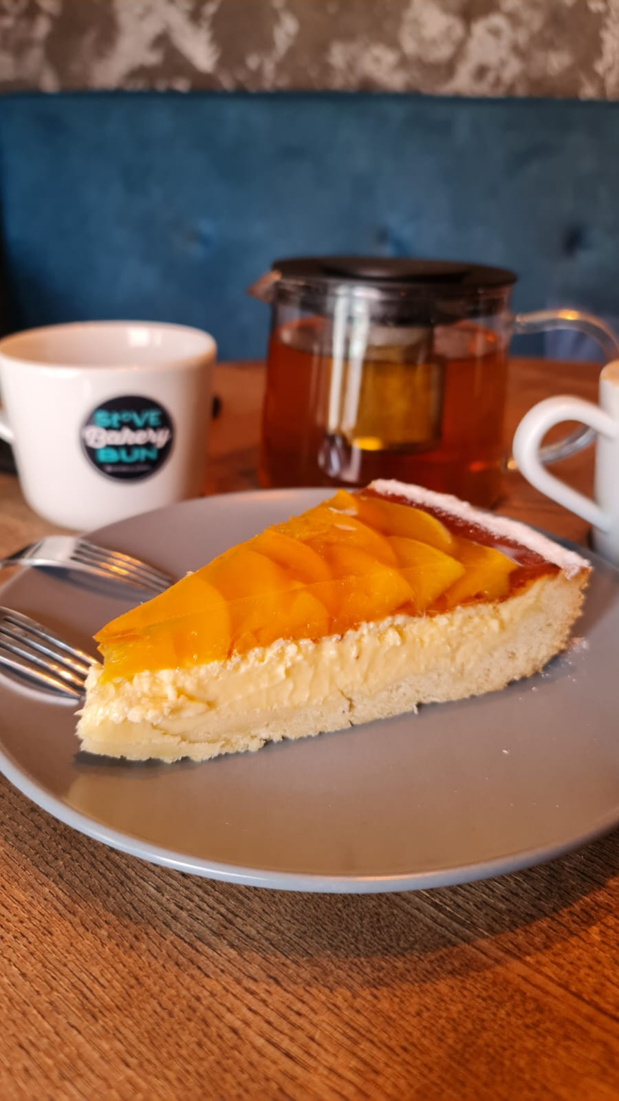 Песочная основа, запечённый чизкейк на основе сыра и сливок в сочетании с освежающими фруктами или ягодами под желе.
