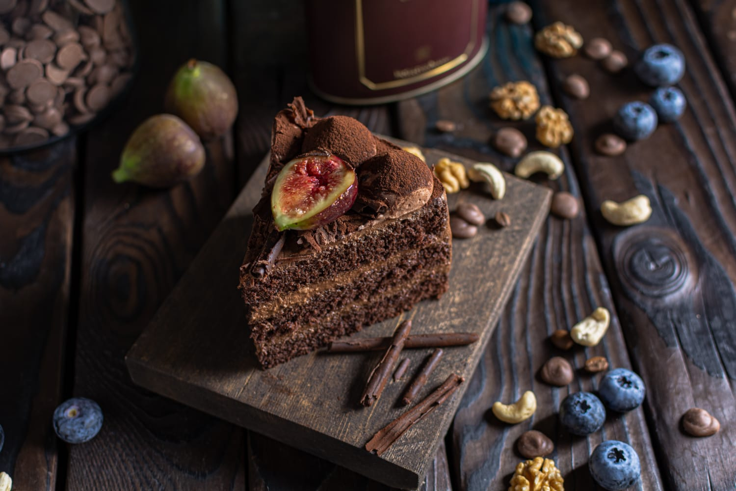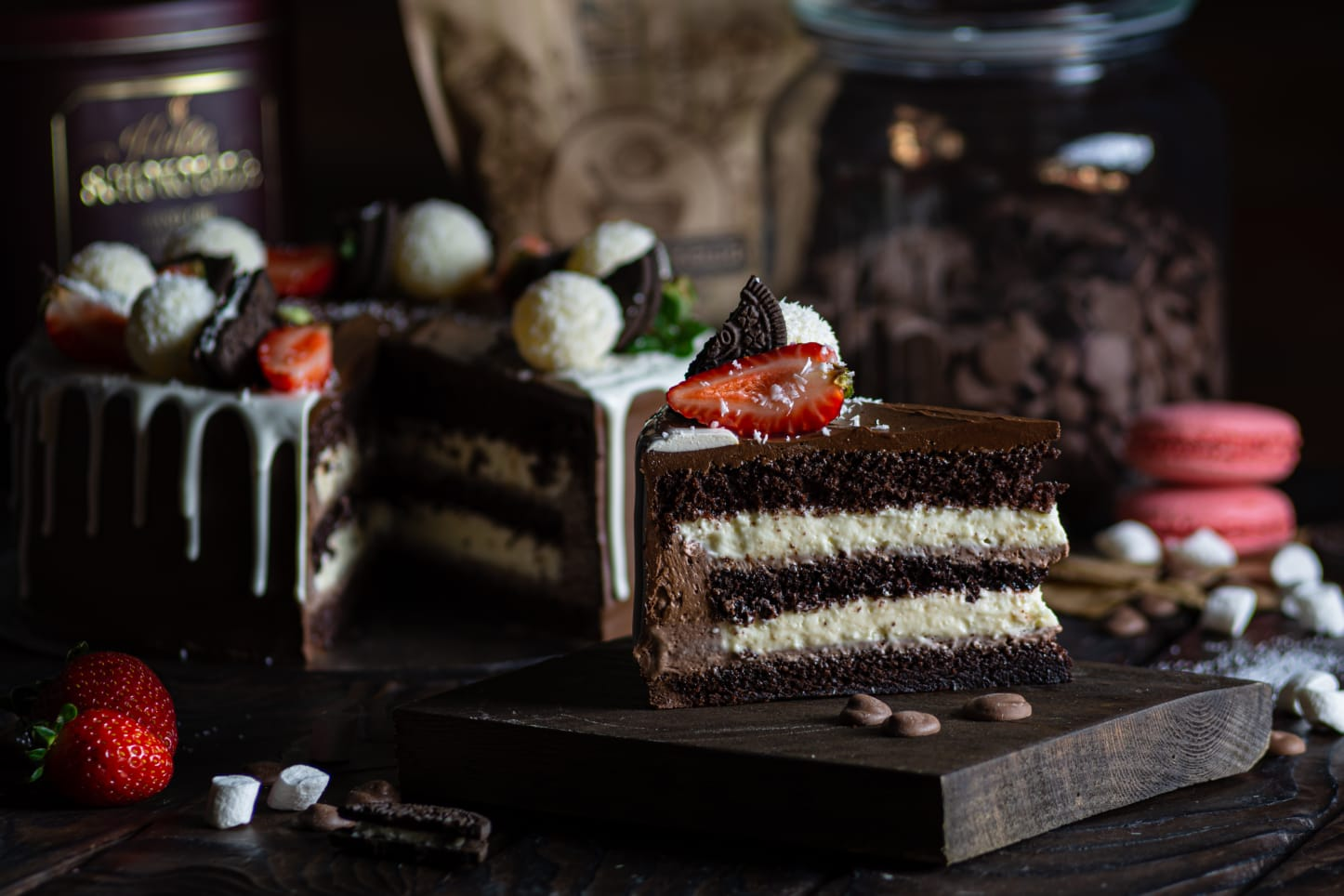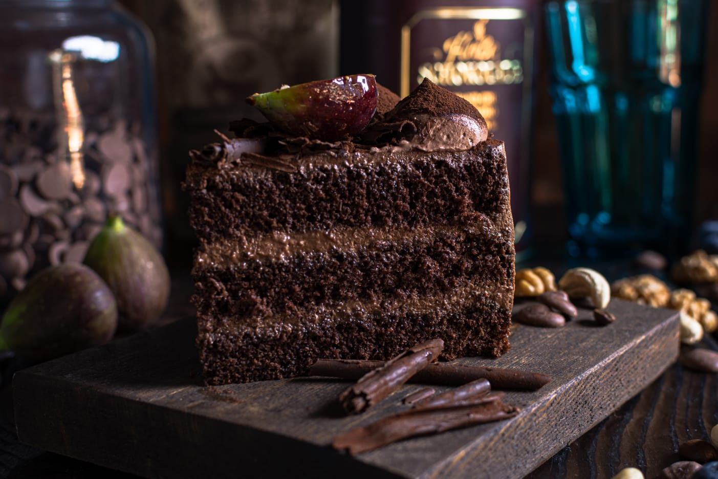 Десерт с насыщенным шоколадным вкусом, состоит из влажного шоколадного бисквита, пропитанного сиропом, и нежного крема из тёмного шоколада с добавлением сливок ликера.